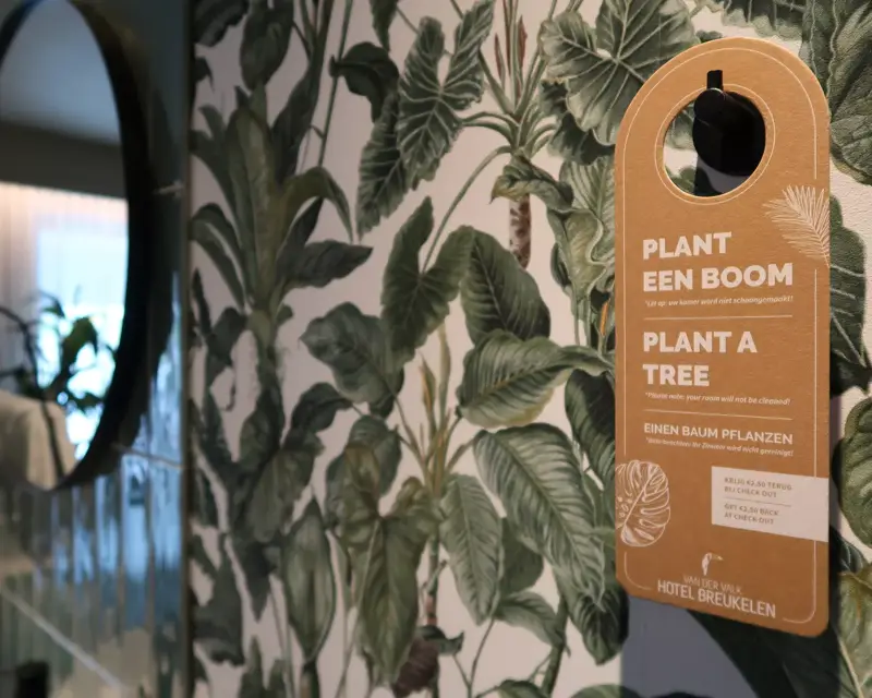 Wir bieten unseren Gästen die Möglichkeit, auch "grün" zu wählen. Wir ermutigen Gäste, die länger als eine Nacht bleiben, auf die Zwischenreinigung des Zimmers zu verzichten. Wenn sie darauf verzichten, pflanzen wir in Zusammenarbeit mit Hotels For Trees einen Baum. Um dies zusätzlich zu fördern, bieten wir auch verschiedene Green-Stay arrangements mit Rabatt an. Auf diese Weise bieten wir unseren Gästen ein gastfreundliches grünes Erlebnis und unterstützen Aufforstungsprojekte weltweit!