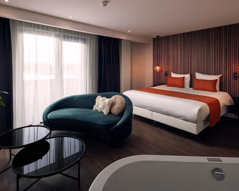 Experience extra comfort and luxury in our Junior Suite, a spacious and stylishly furnished room that is perfect for a relaxing and special stay. With a surface area of approximately 30 m², the Junior Suite offers plenty of space to unwind in a warm and modern ambience.