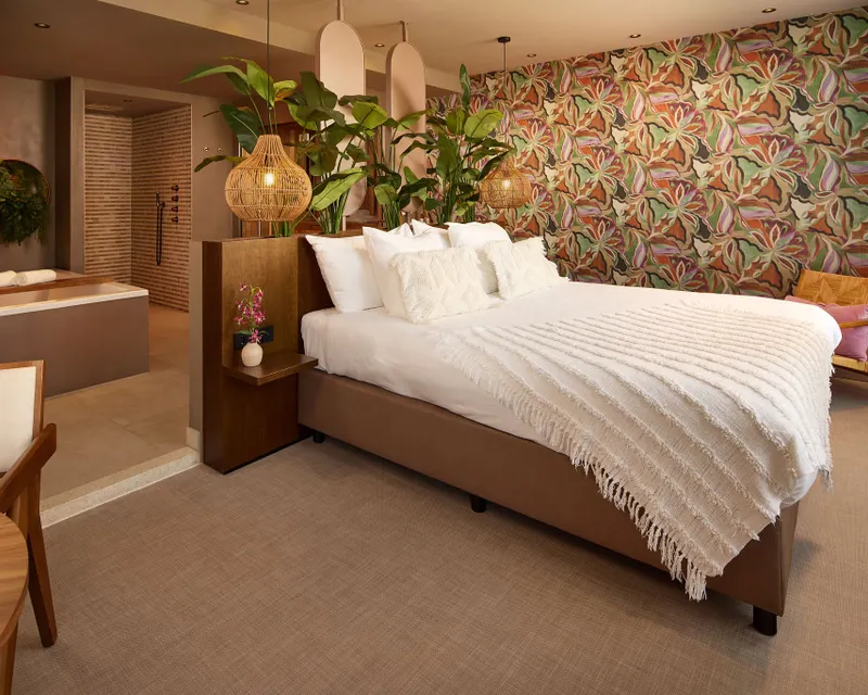 Escape to a tropical paradise in the Tulum Suite, a spacious 70 m² hotel suite inspired by the sunny, bohemian atmosphere of Mexico. Light colours, natural materials and decorative accents create a calm and relaxed ambience that instantly evokes a holiday feeling.