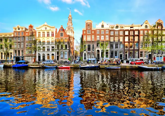 The vibrant capital of the Netherlands. Visit Museumplein and discover museums such as the Rijksmuseum, the Van Gogh Museum, or the Stedelijk Museum. Go shopping in Kalverstraat or P.C. Hooftstraat or explore the city from the water during a canal cruise.