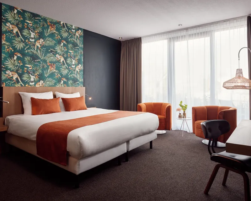 Ervaar ultiem comfort en luxe in onze Superior Kamer met Terras & Bubbelbad. Deze stijlvol ingerichte kamer is gelegen op de begane grond van het bijgebouw, waar zich ook onze wellnessfaciliteiten, het zwembad en de fitnessruimte bevinden.De kamer is voorzien van een ruim kingsize bed, een moderne inloopdouche en een bubbelbad voor een ontspannen verblijf. Voor extra comfort kunt u tijdens uw verblijf gratis gebruik maken van badjassen en slippers, zodat u optimaal kunt genieten van uw wellnesservaring.